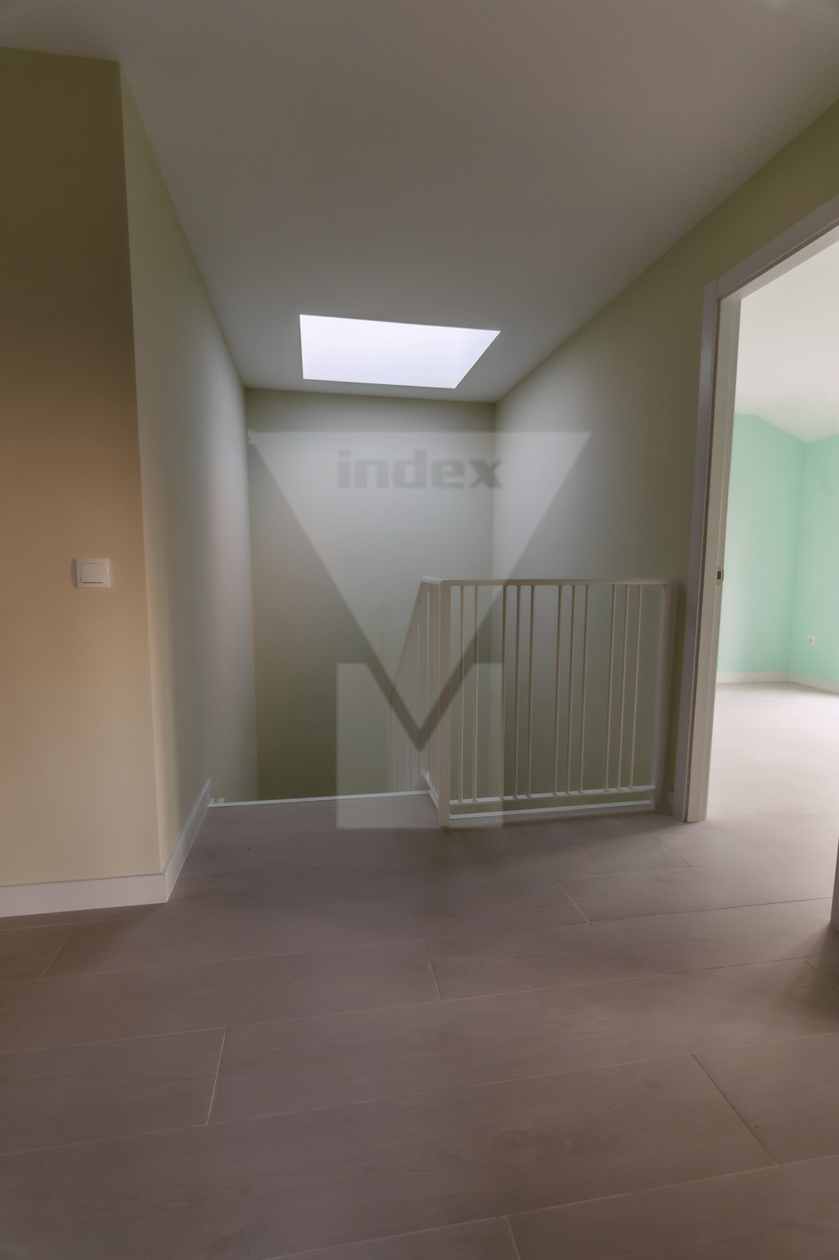 - Un muro verde esmeralda tras una librería de madera aporta una profundidad sofisticada, sin devorar los metros cuadrados