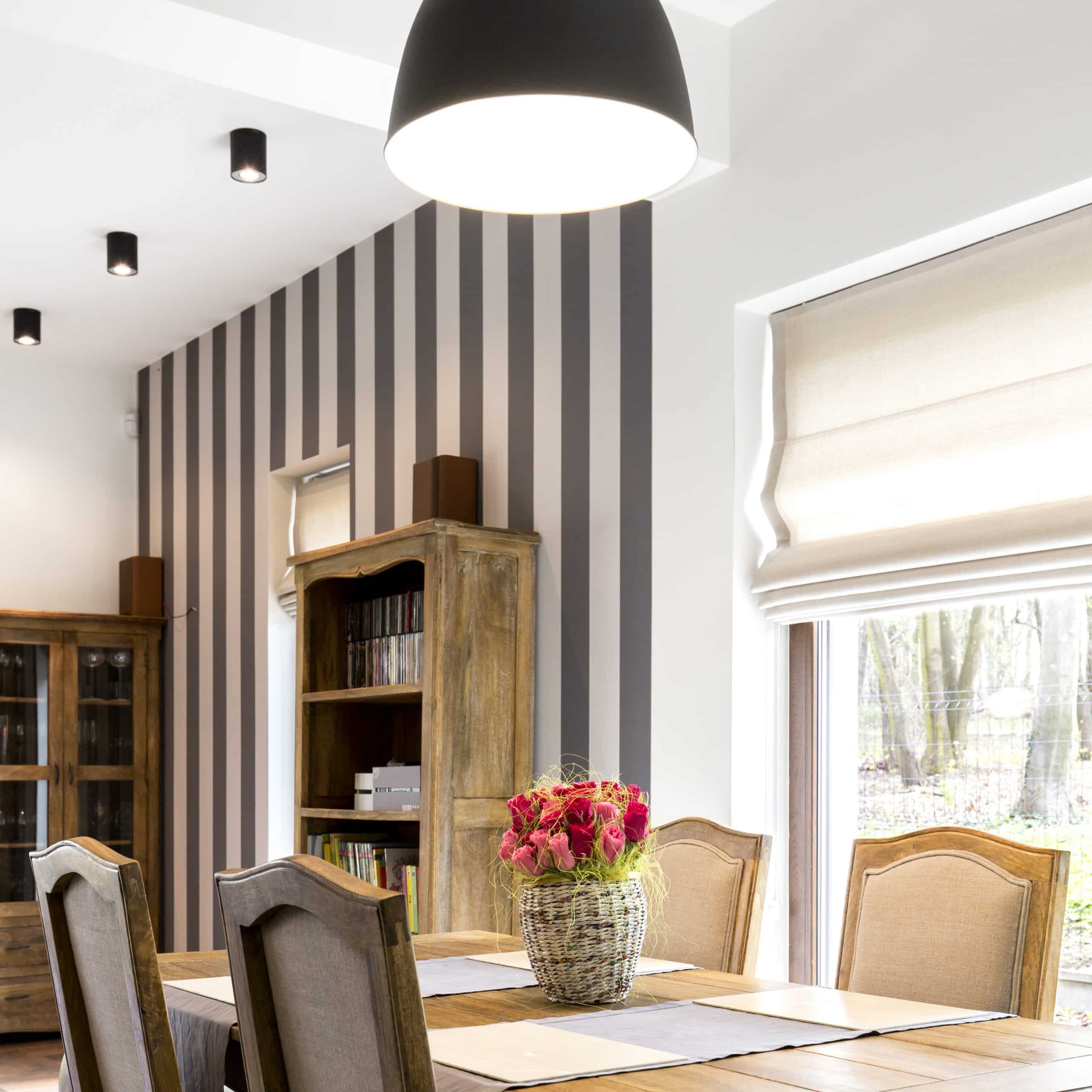 Las rayas verticales actúan como columnas invisibles, elevando visualmente el techo y estilizando la habitación, como si tu techo creciera y se alejara. Por el contrario, las líneas horizontales ensanchan el espacio, aportando una sensación de amplitud y calma, ideal para estancias estrechas o pasillos. Gana espacio sin tener más metros cuadrados.