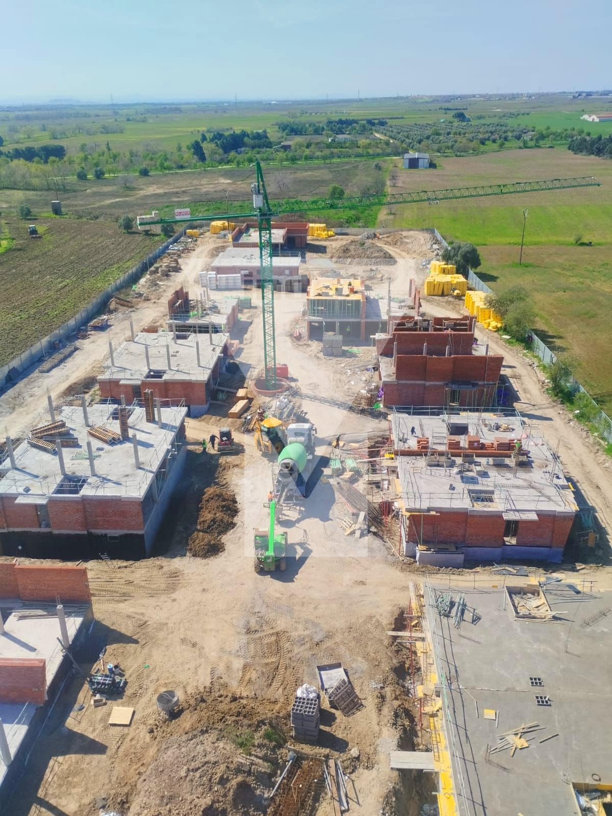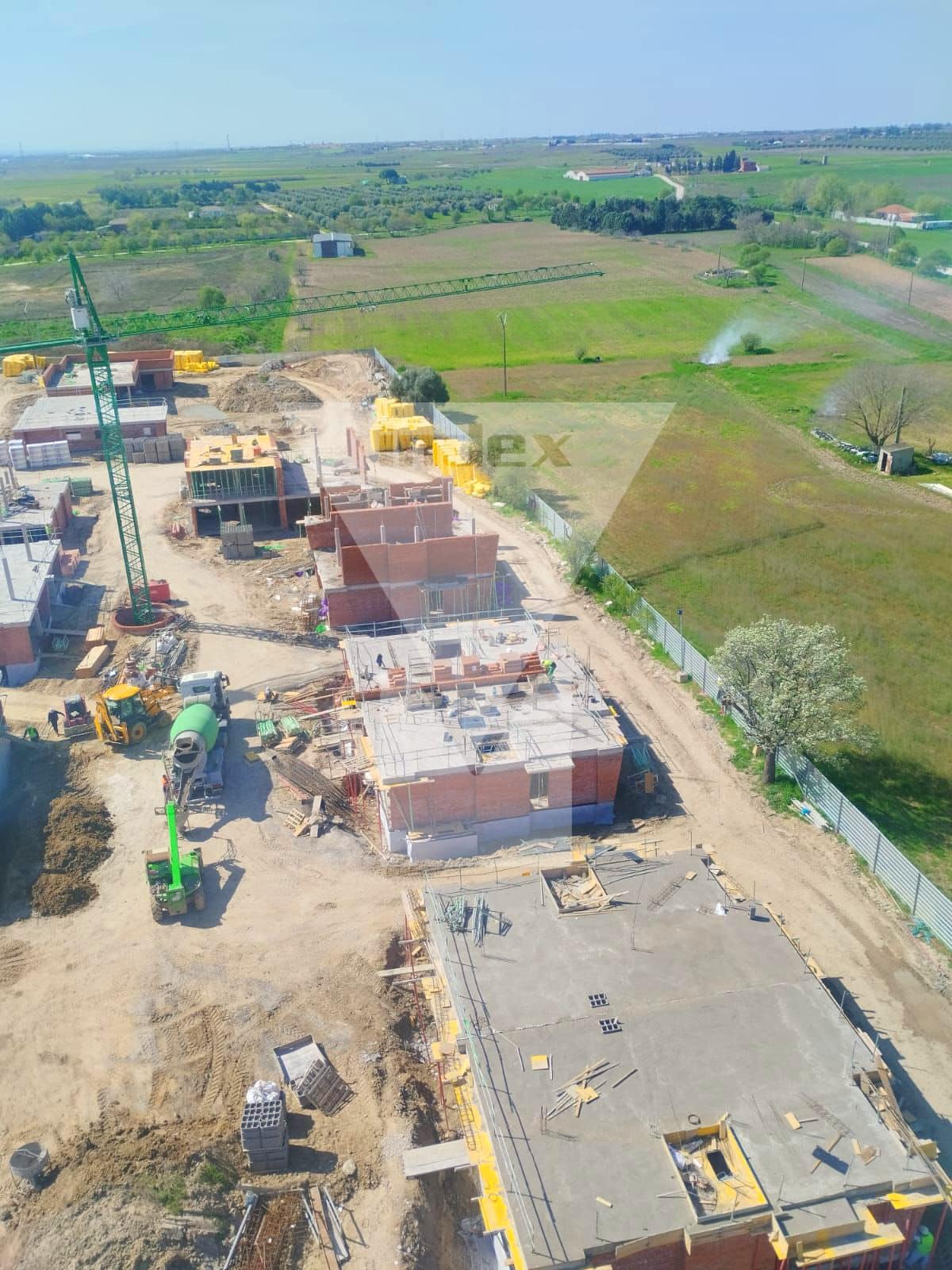 Imágenes desde una grúa en las obras de la promoción de viviendas de Grupo Index ‘Fuentes Claras’ en Cubas de la Sagra (Madrid)
