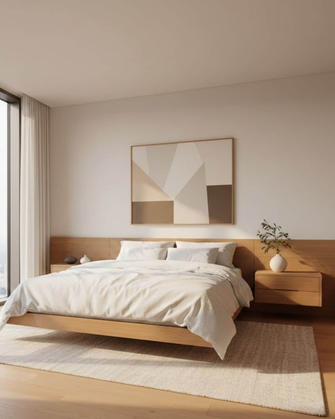- Paleta serena: Tonos tierra, crudos y blancos rotos para inducir al sueño.