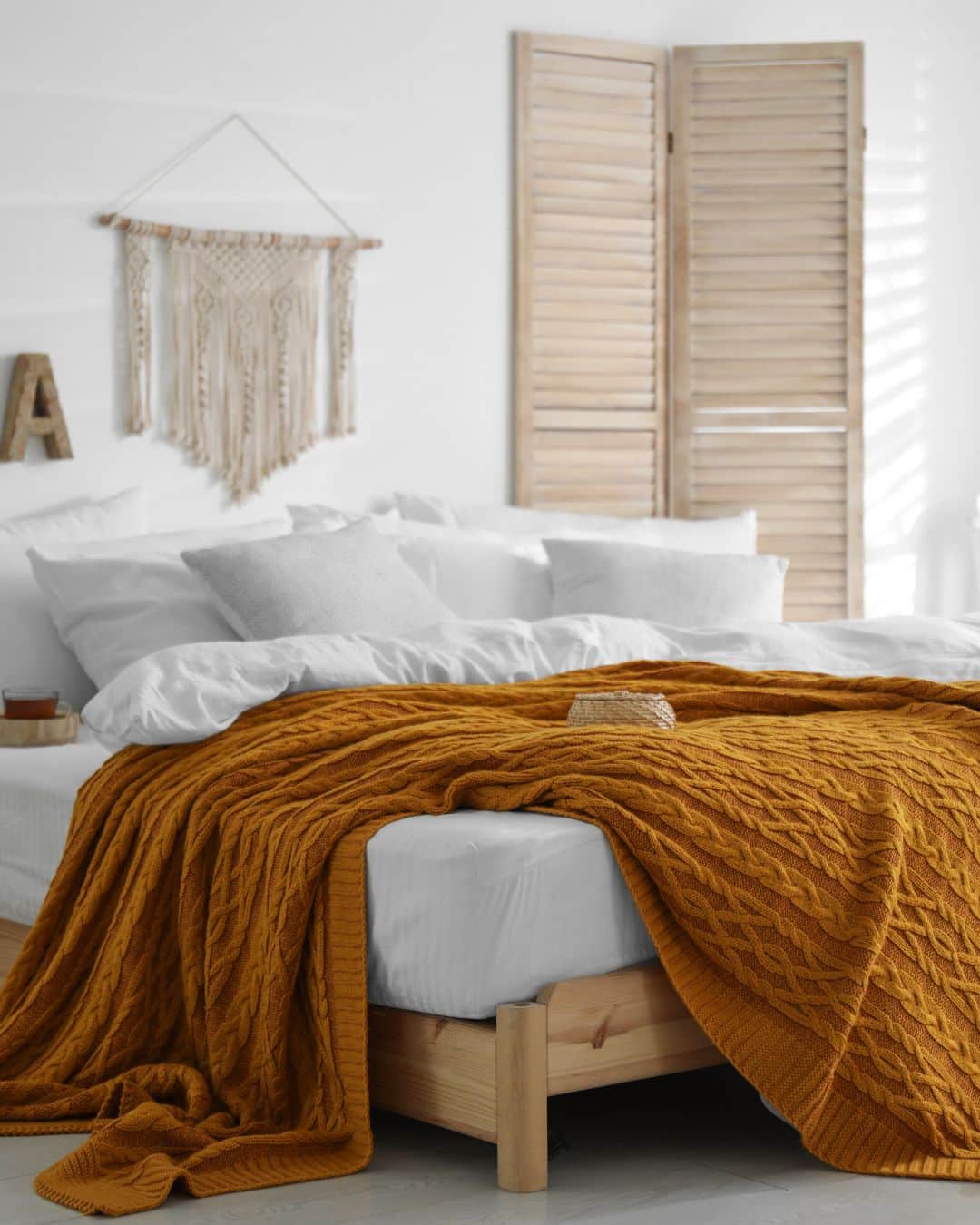 Sin embargo, la verdadera magia reside en el "layering" o el arte de las capas. Una cama de revista no se viste, se construye. La base debe ser táctil y honesta: sábanas de lino o algodón percal en tonos neutros que respiren. Sobre ellas, el juego de texturas es vital; una colcha con cuerpo y un plaid de lana o punto a los pies rompen la monotonía y añaden profundidad visual y calidez.